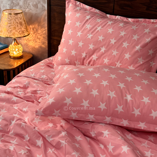 "Étoiles Roses" Parure de Lit Couverlit, pack complet pour lit 1 place REF: CVK00287