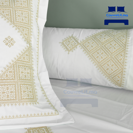 "BRONZE" Drap Brodé [ Tarz SKALLI ] 4 Pièces