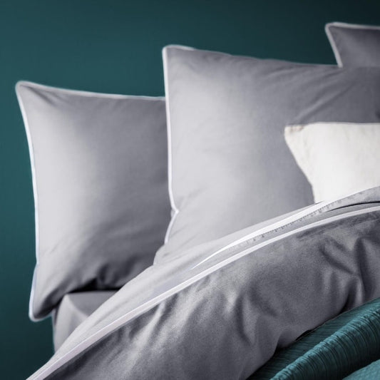 "Luxe intemporel" Housse de Couette Gris avec passepoil blanc en 100% coton Ref: CV0065