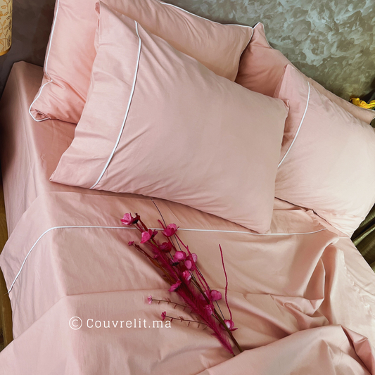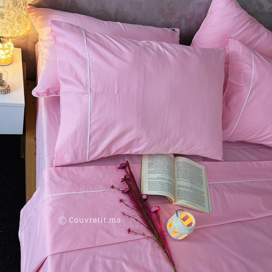 Ensemble Parure de lit PERCAL 100% Cotton, 6 Pièces en Cotton ref :CVS0225 Rose Clair