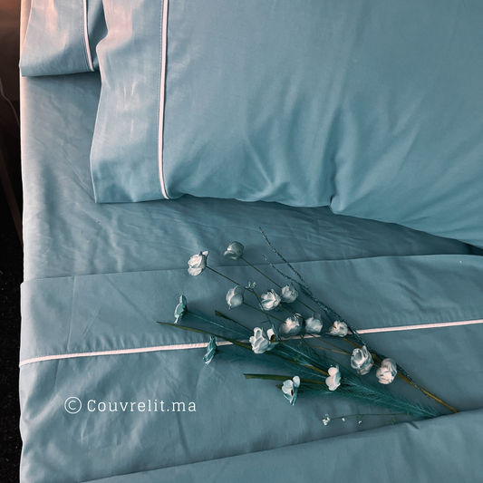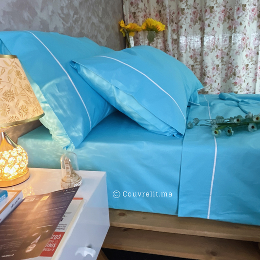Ensemble Parure de lit 100% Cotton, 6 Pièces en Cotton ref :CVS0225 Bleu Turquoise