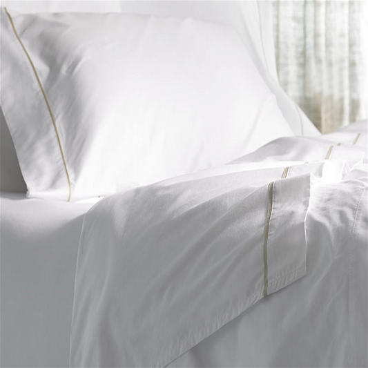Ensembles de Drap 4 pièces blanc avec passepoile beige Ref: CV0088