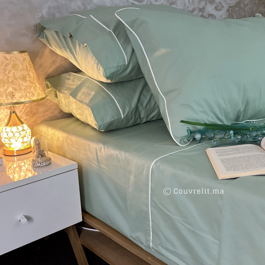 Ensemble Parure de lit 100% Cotton, 6 Pièces en Cotton ref :CVS0225 Vert Eaux