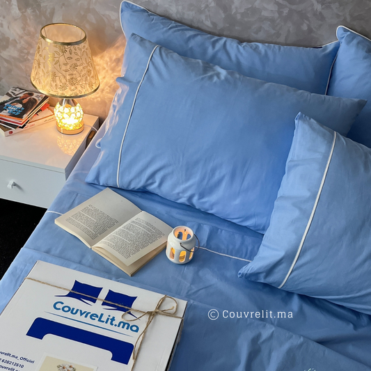 Ensemble Parure de lit 100% Cotton, 6 Pièces en Cotton ref :CVS0225 Bleu Ciel