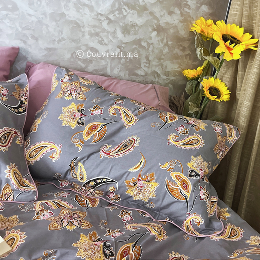 "Flots ORANGE" Ensemble Housse de Couette en 100% COTTON Ref: CVM0245