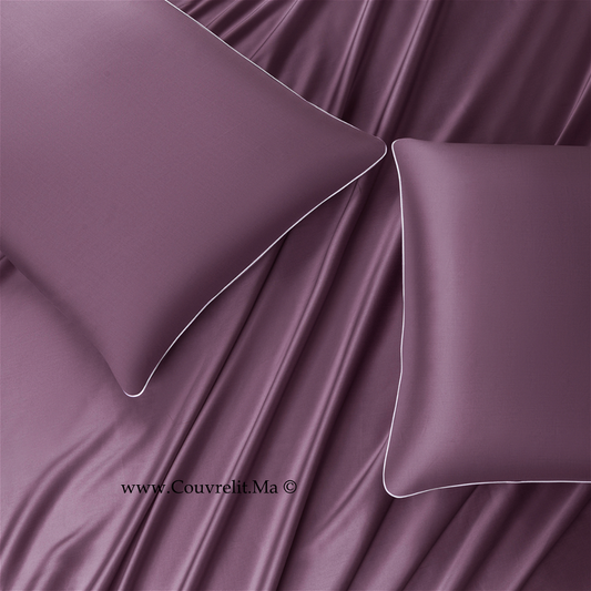 SILK Taie D'oreillers en Soie Avec Band Blanc - MAUVE