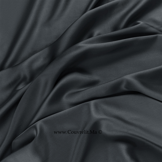 SILK Taie D'oreillers en Soie Avec Band Blanc - NOIR