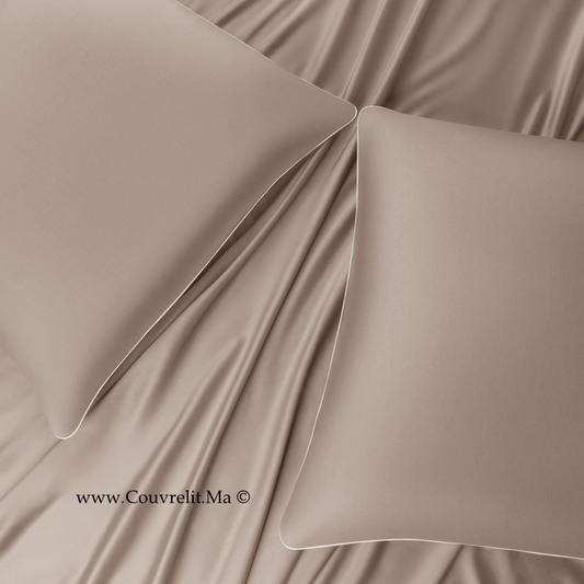 SILK Taie D'oreillers en Soie Avec Band Blanc - TAUPE
