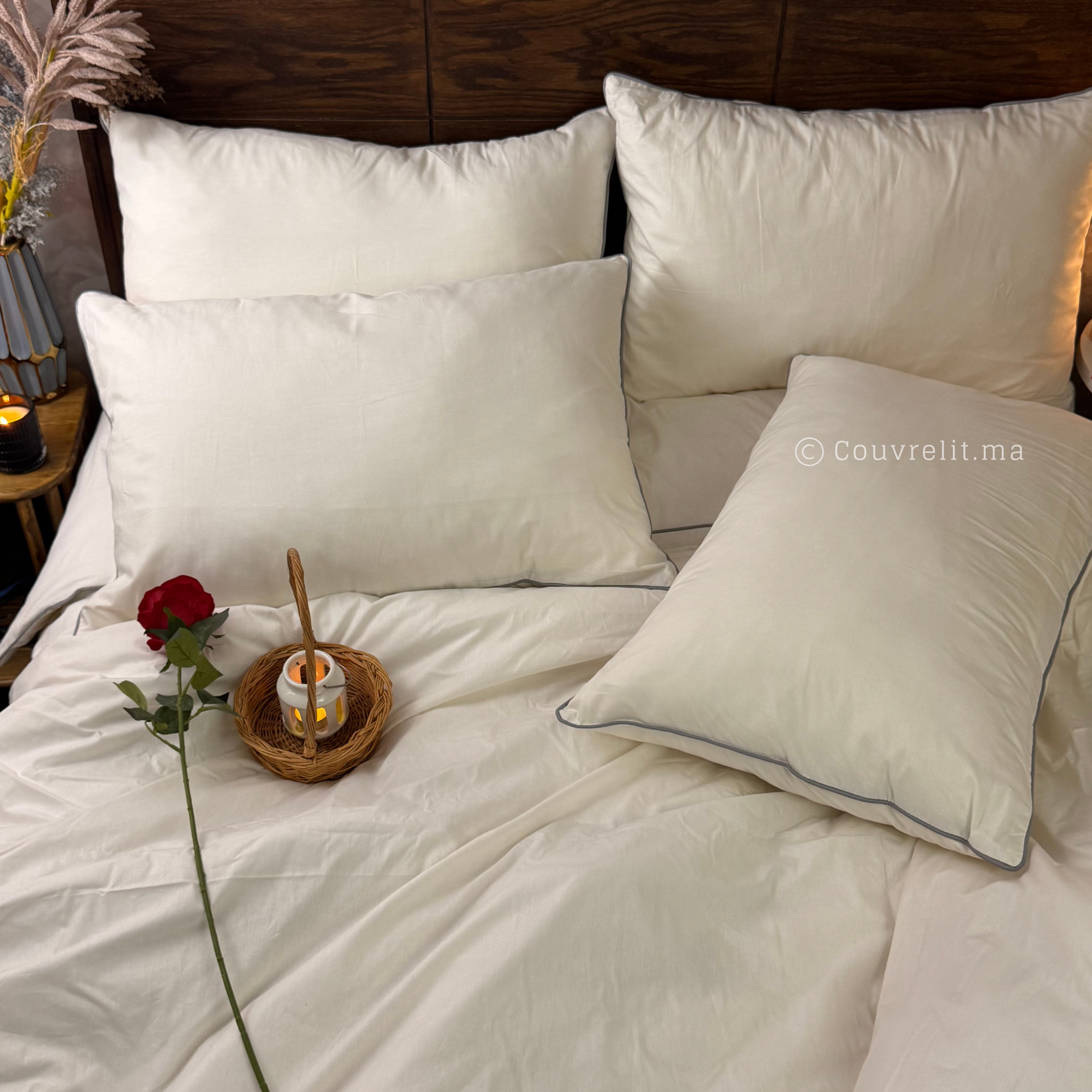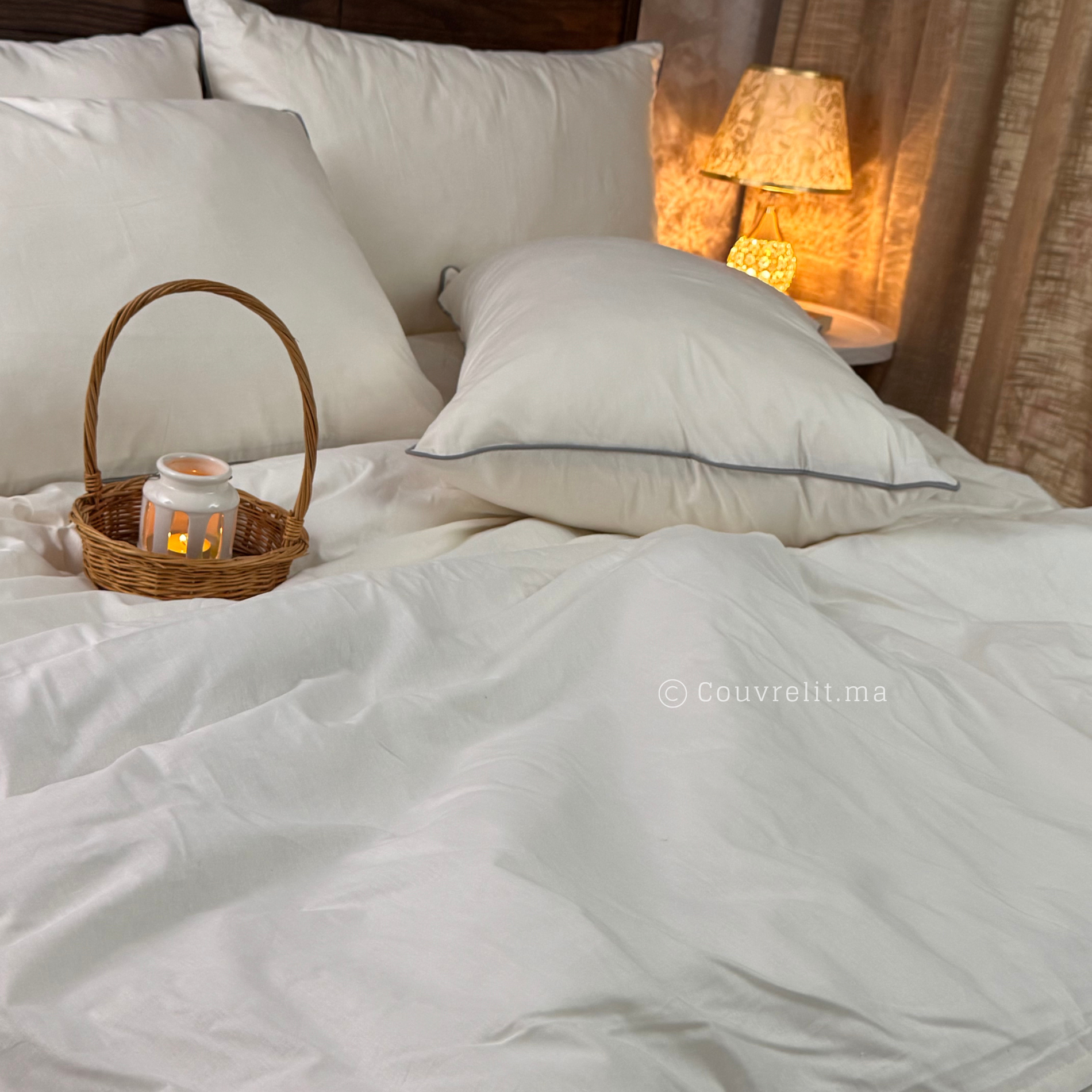 Apportez une touche de pureté et de raffinement à votre chambre avec la parure de lit Élégance Ivoire.