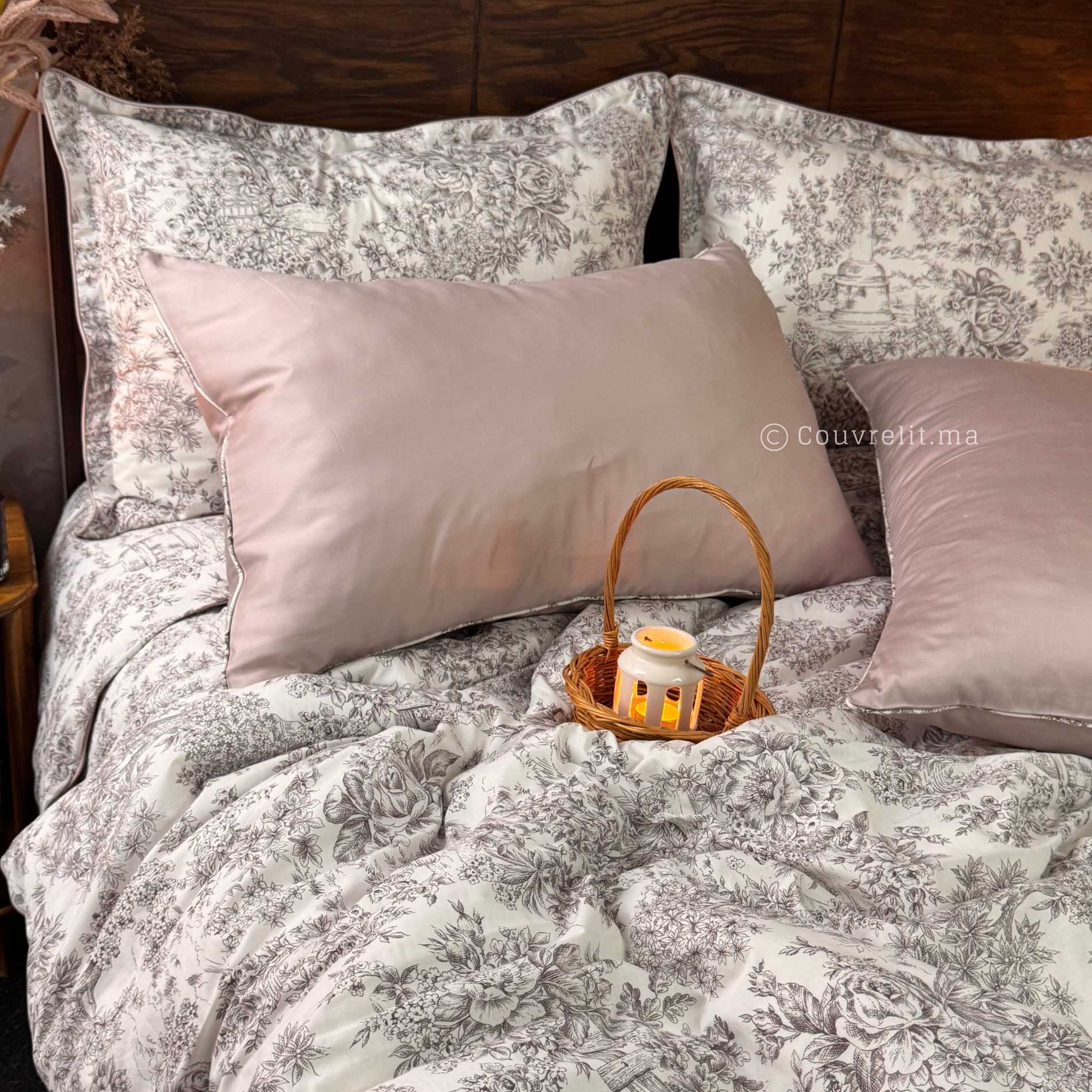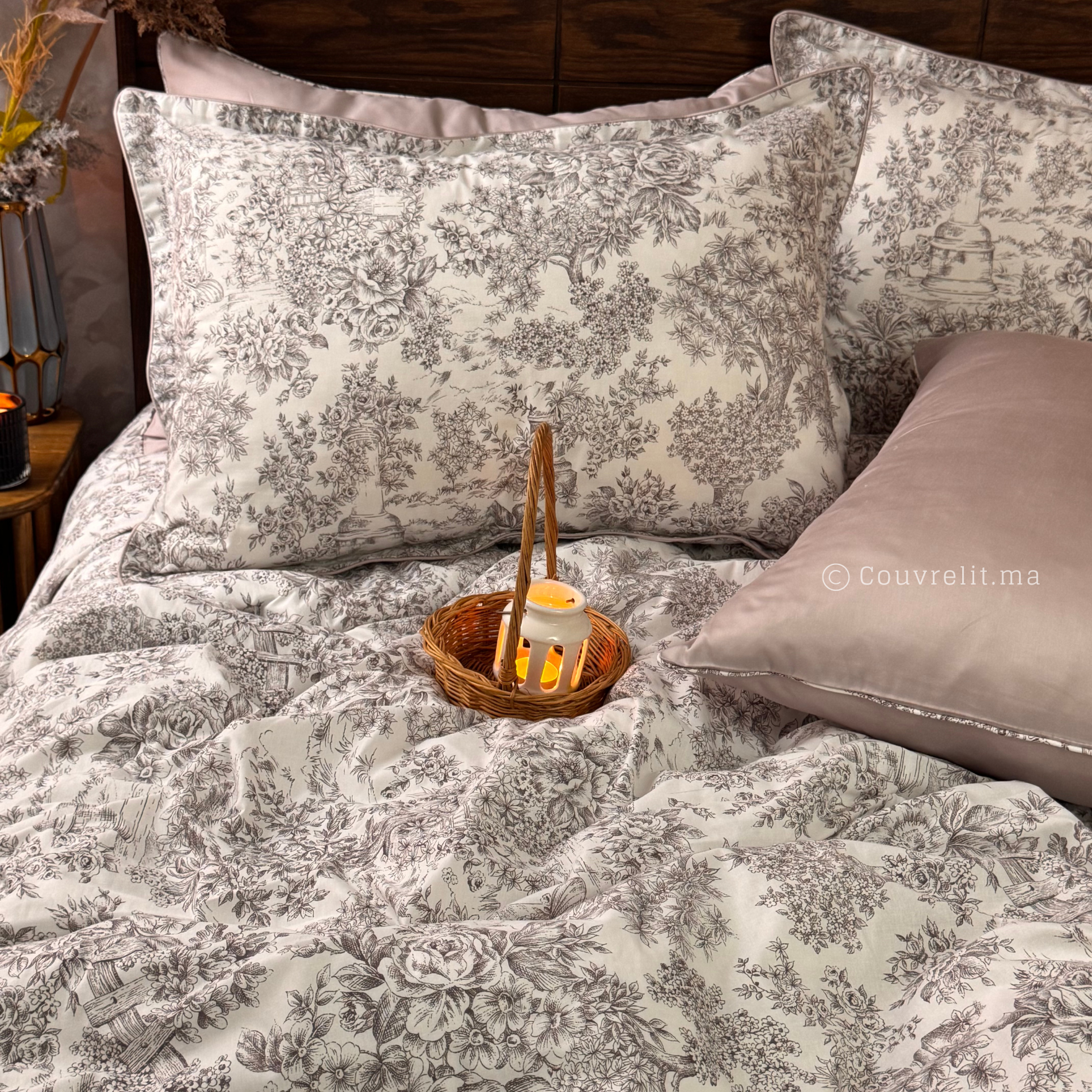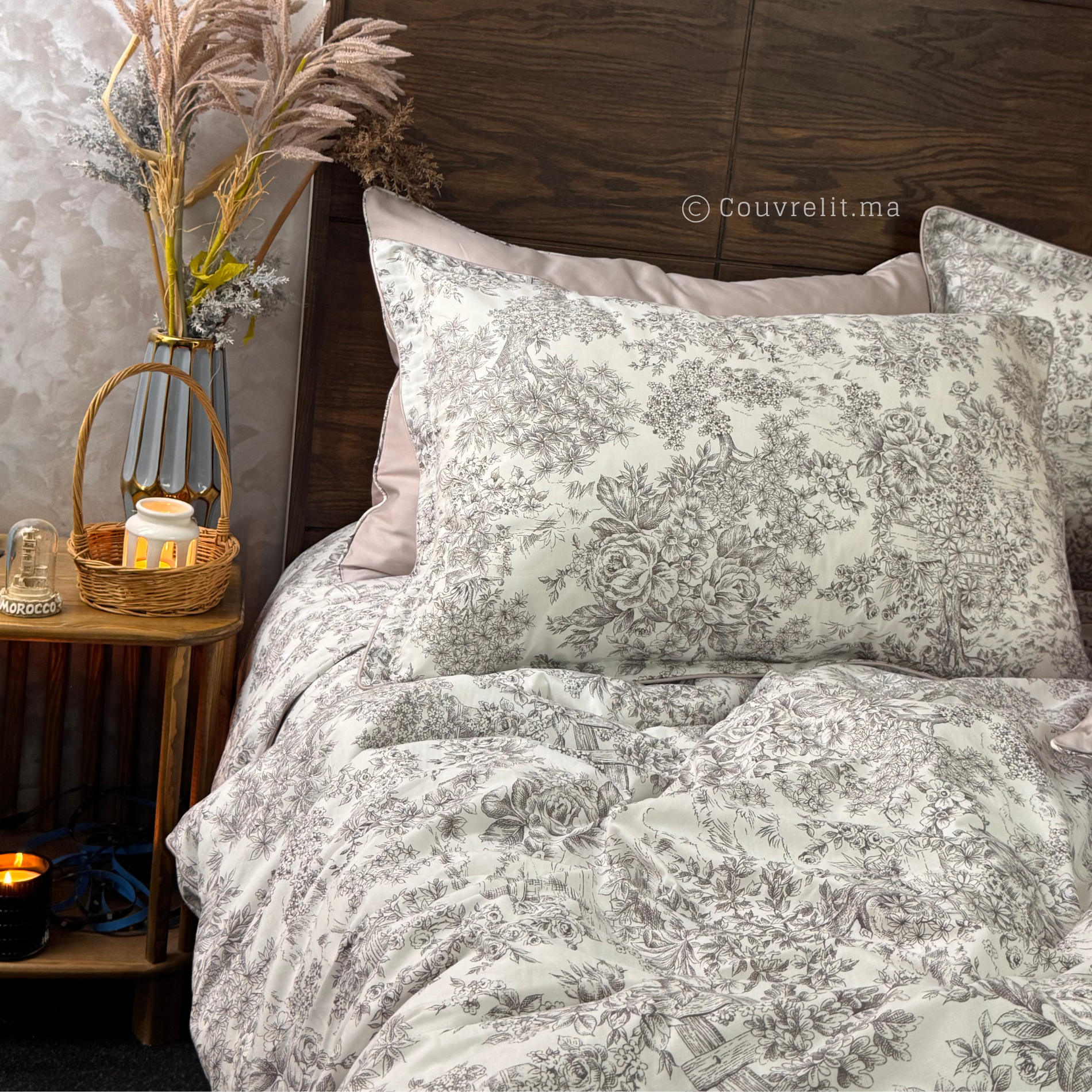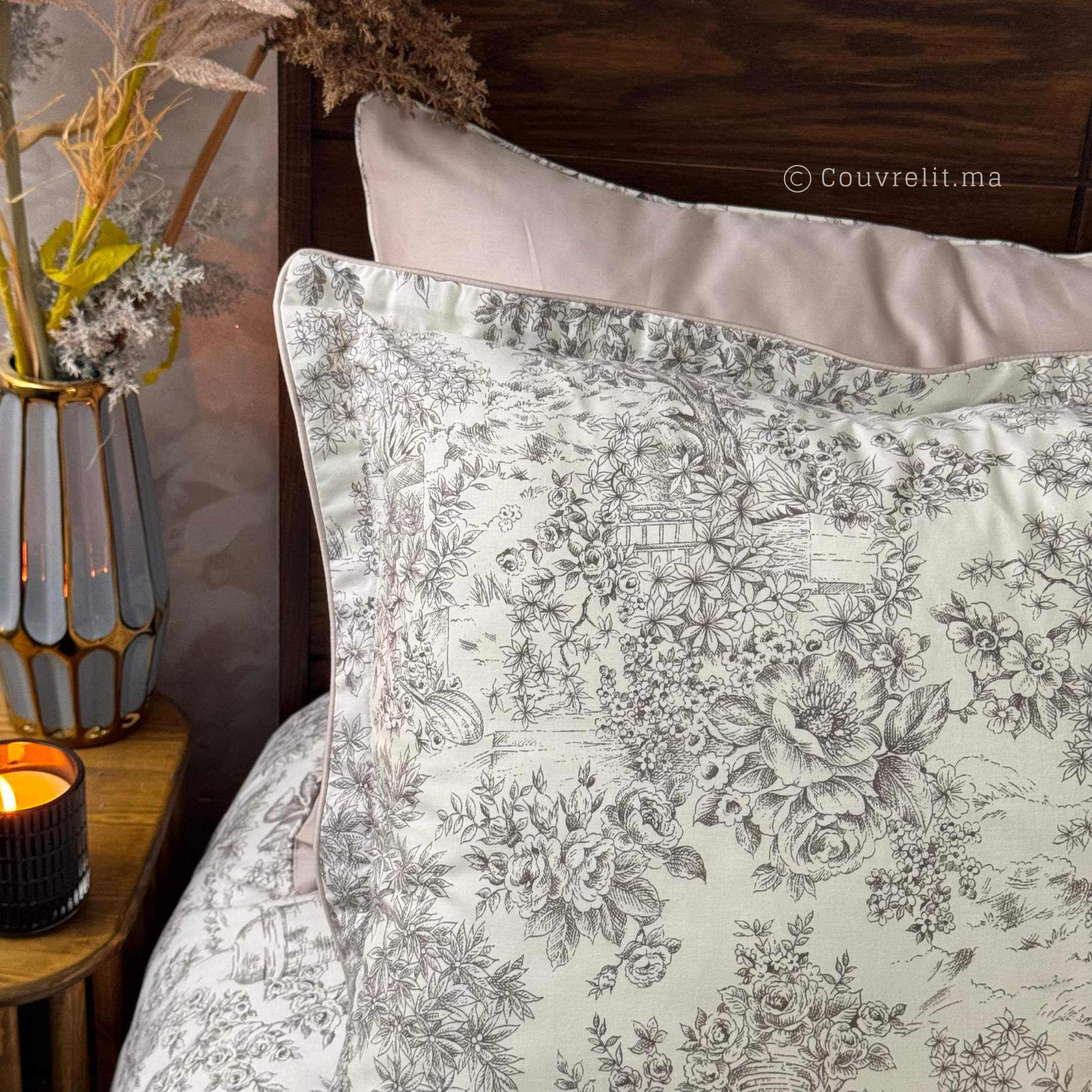Confectionnée en 100 % coton doux et respirant, la parure Rosas Gris allie confort, finesse et élégance naturelle pour des nuits paisibles et un décor plein de charme.