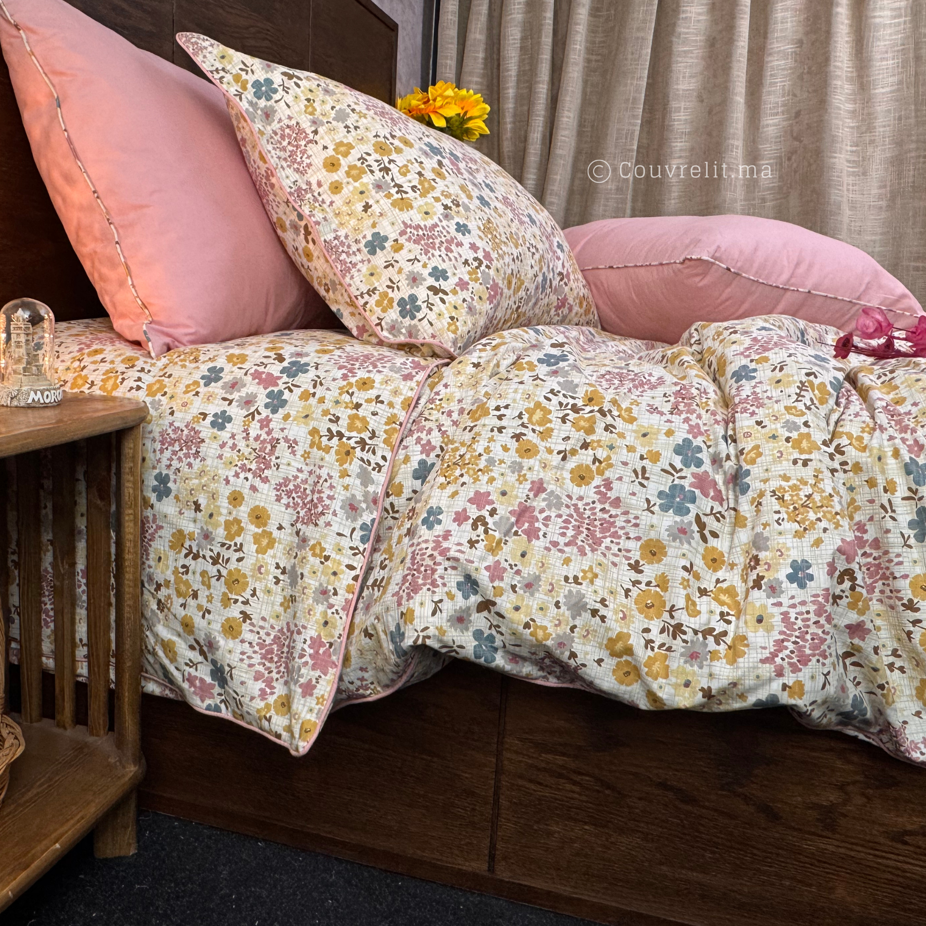 " FLORINA " Parure de Lit - Élégance florale et douceur pastel, REF: CVM00297