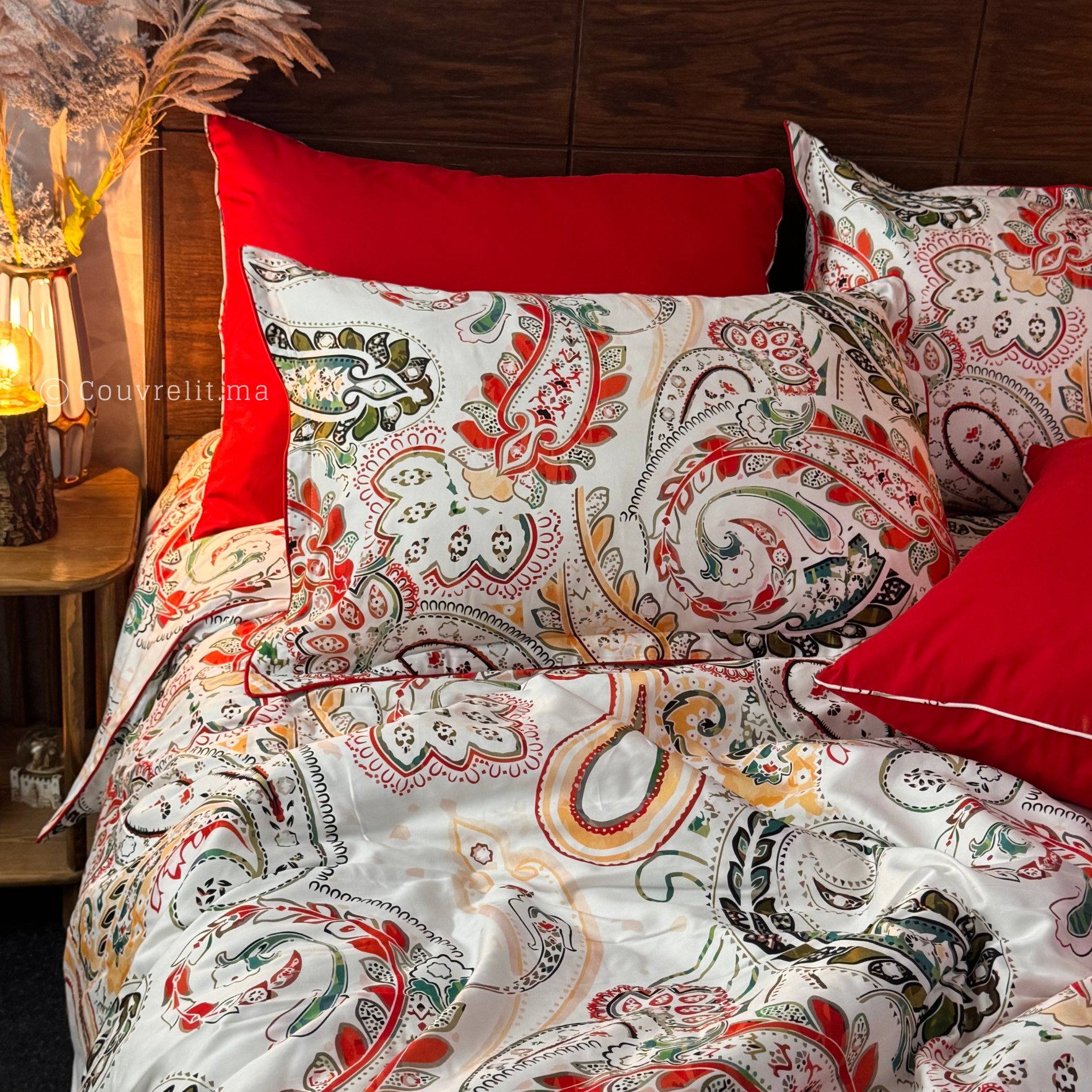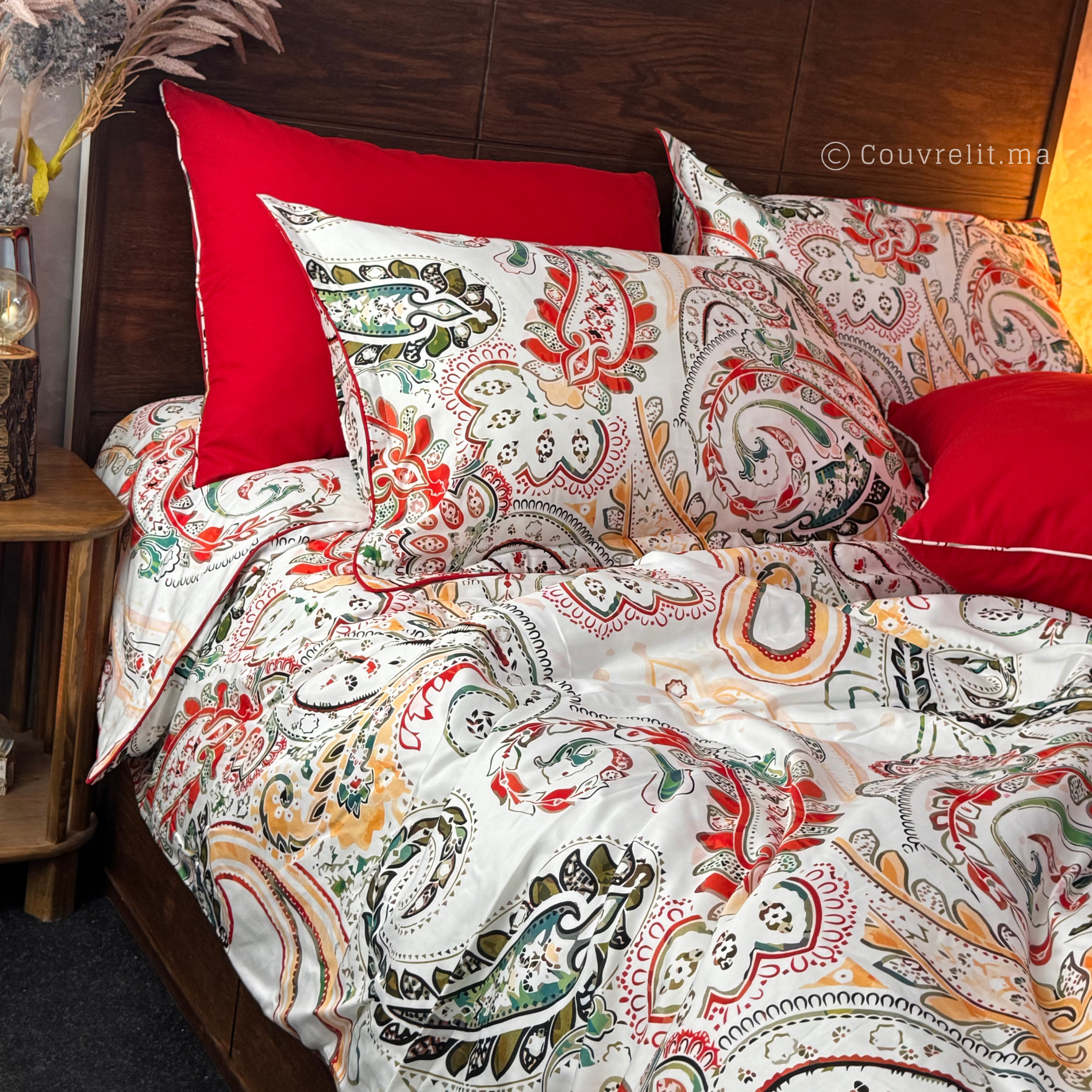 Offrez à votre chambre une touche d’élégance artistique avec notre parure de lit Satin Andalusia, confectionnée en 100% coton satin pour un toucher soyeux et un confort absolu.